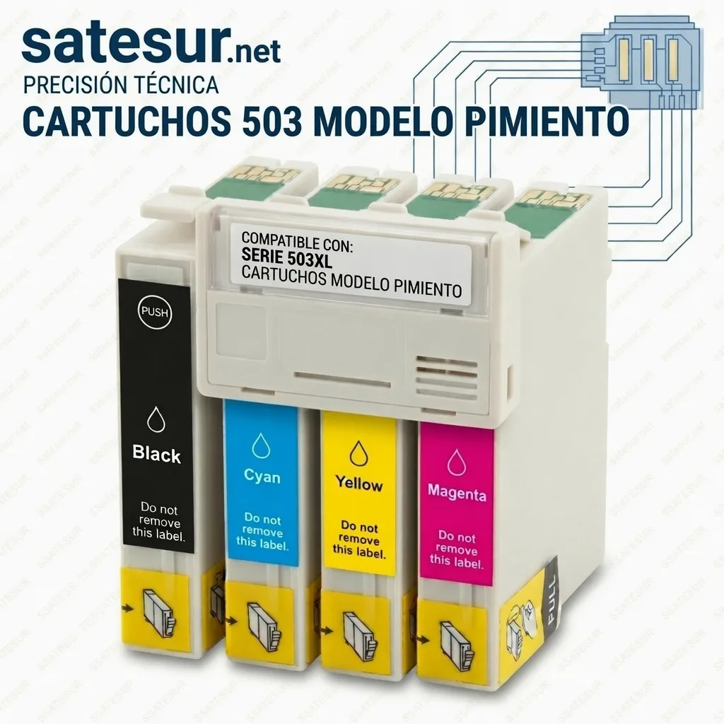 Consumible de reemplazo técnico para la serie 503XL de Epson (Chiles/Pimientos), diseñado específicamente para la última generación de impresoras Expression Home y WorkForce. Este cartucho proporciona una integración electrónica completa, garantizando impresiones nítidas con una gestión de color precisa.