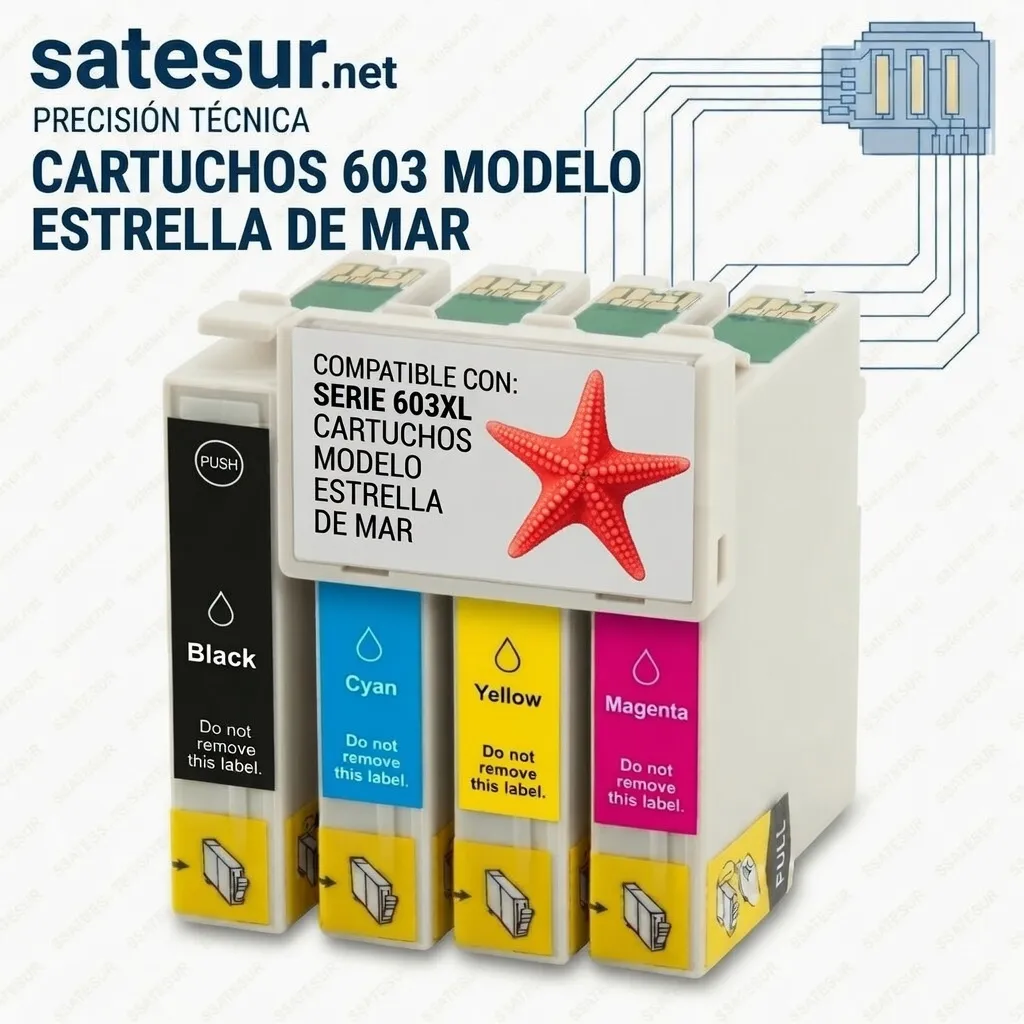 Consumible de reemplazo técnico para la serie 603XL de Epson (Estrella de Mar), diseñado para ofrecer una compatibilidad óptima en una amplia gama de impresoras Expression Home y WorkForce. Este cartucho asegura una reproducción de textos nítida y colores equilibrados para el uso diario.